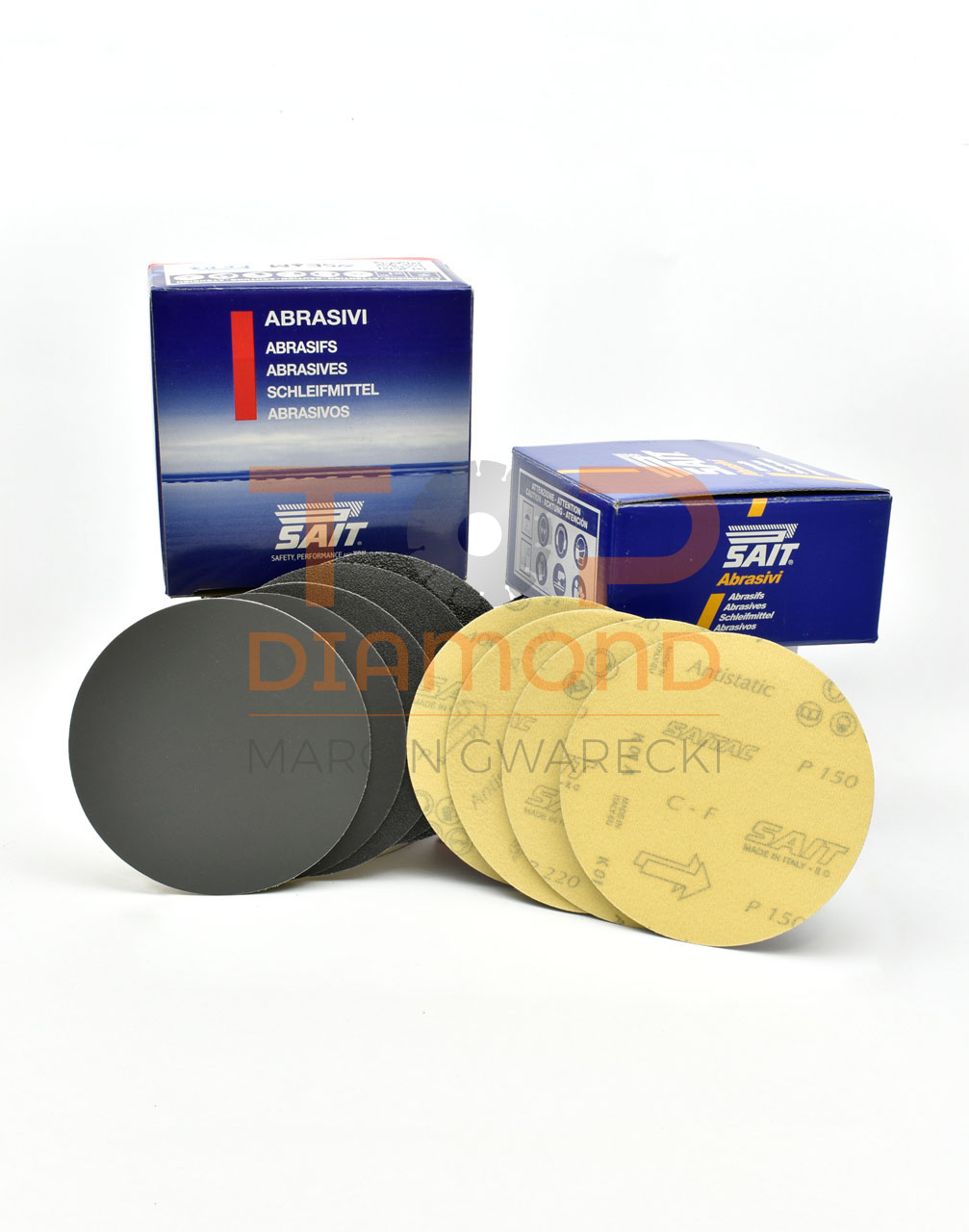 Krążek ścierny na rzep do szlifowania marmuru, granitu, kamienia, szkła, laminatu i drewna.