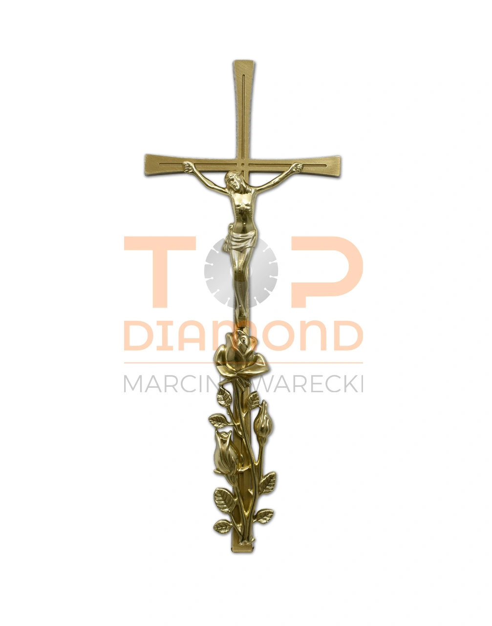 KRZYŻ MOSIĘŻNY KRESKA ROMANO Z RÓŻĄ