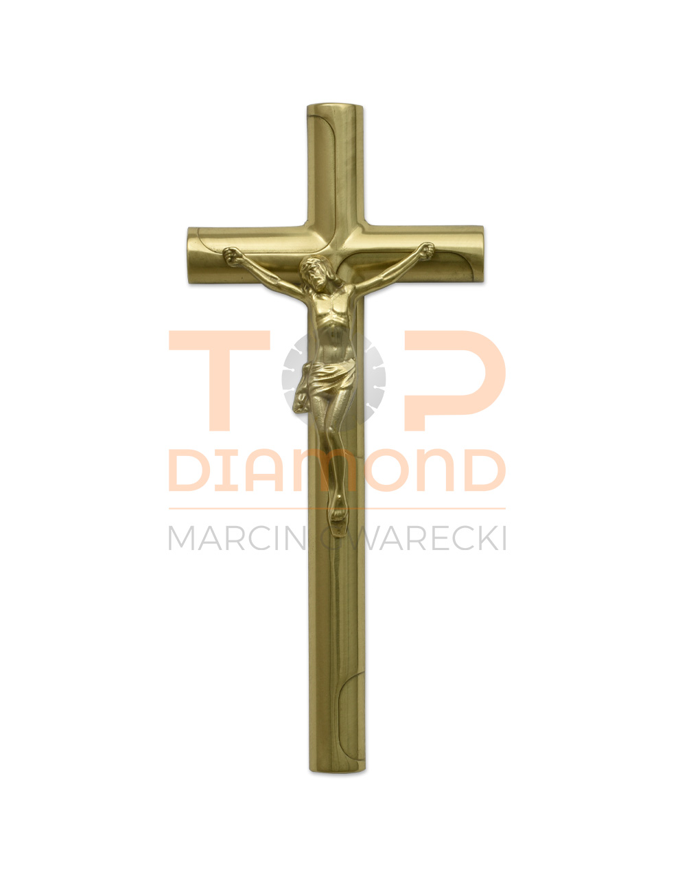 Krzyż z wizerunkiem mosiężny, polerowany.