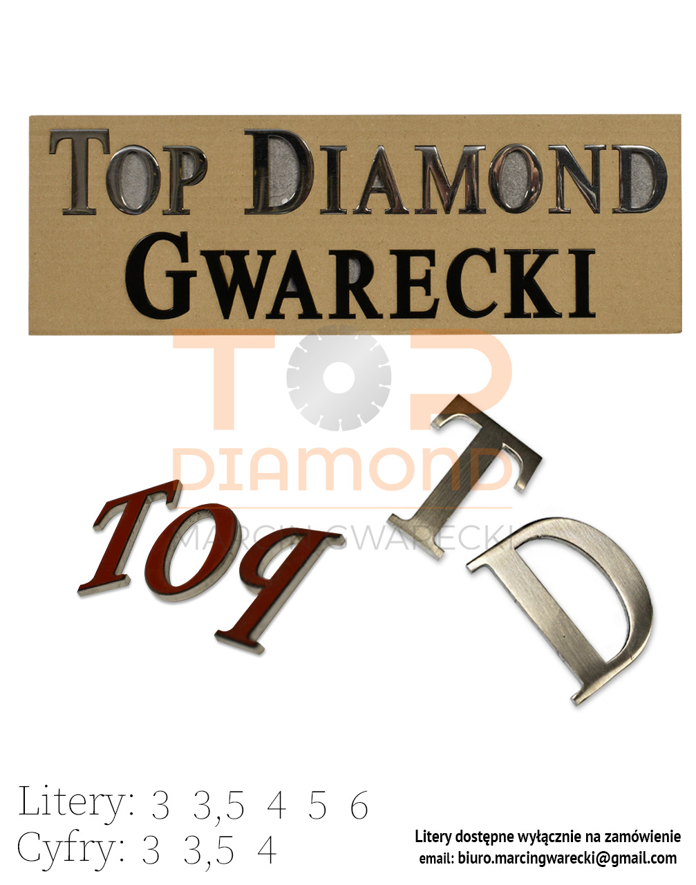 Litery NAKLEJANE są literami dostępnymi tylko na zamówienie.